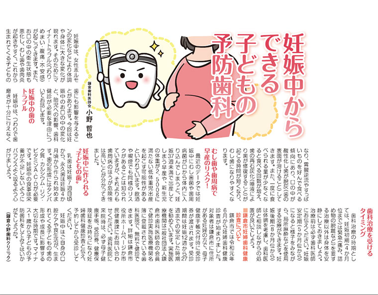 鎌倉衛生時報 2020年発行 「妊娠中からできる子どもの予防歯科」について執筆しました。