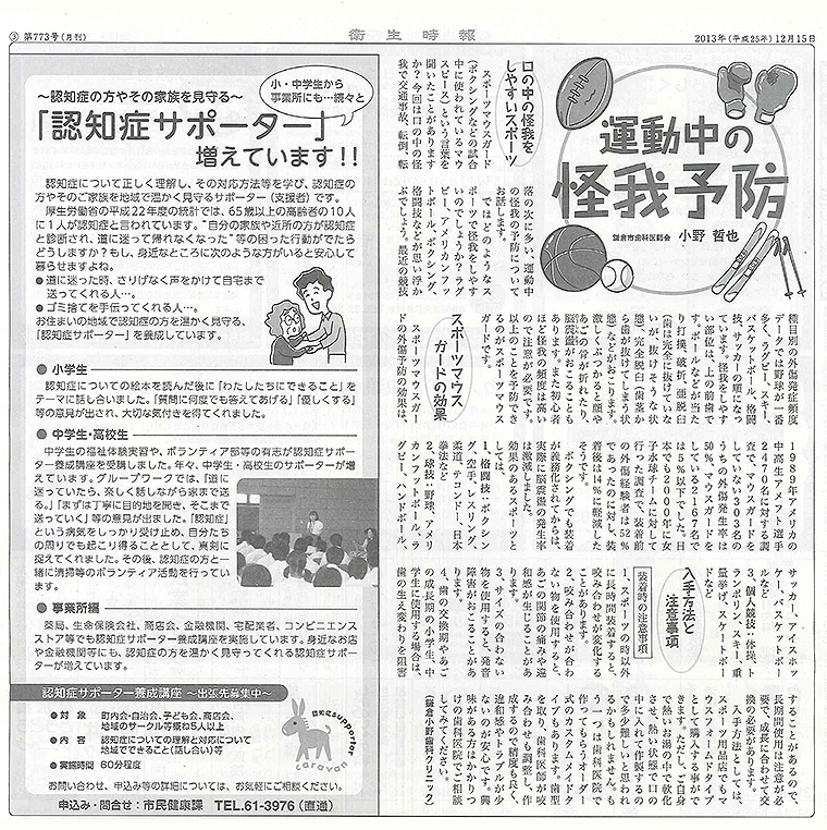 鎌倉衛生時報 2013年12月15日発行 「運動中の怪我予防」について執筆しました。